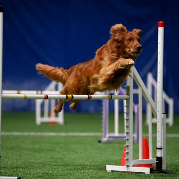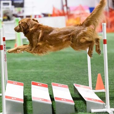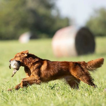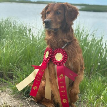 Mystique is working on her CDX and RACH titles, she also has some intro agility and scentwork titles. She is also a certified therapy dog that works with kids and in hospice. She is a dark golden that weighs 55lbs and stands 21.75" tall. Burn is 63lbs and stands 23" tall. He is very high energy, but has an excellent off switch. He gets along with everyone. In the field he's a powerful dog that runs with a lot of style. Burn recently earned his HRCH and MH titles.